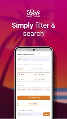 Discover Bali's best Happy Hour deals for cocktails, beer, food, live music, wine, experiences and activities! See what's happening today, or plan your night out later in the week. Discover great new venues, re-discover old ones. Always have new ideas on what to do, and never be left wondering where to go next.