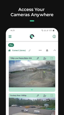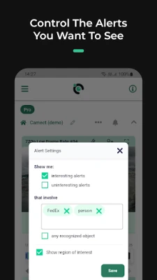 Camect Viewer connects you to the cameras on your Camect smart camera hub. Receive notifications from your cameras when interesting activity occurs, and click through to review the alerts, or to access live or recorded video.