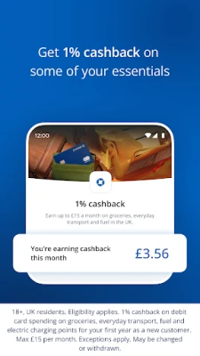 That's 1% cashback when you use your debit card to buy some of your essentials, for your first 12 months with us (3).