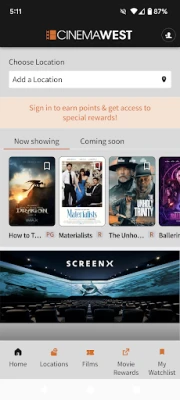 With the Cinema West app, you can easily find showtimes, order food and beverages, access film details, and manage your movie rewards—all in one place!