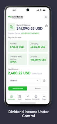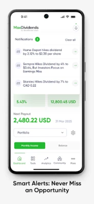 MaxDividends App is a powerful investment tool designed for dividend investors. It helps users identify and analyze top dividend-paying stocks by providing key financial data, including dividend yield, growth history, payout ratios, and overall reliability. The app simplifies the research process by offering intuitive screening tools, real-time updates, and in-depth insights into dividend sustainability. Whether you're a beginner or an experienced investor, MaxDividends App makes it easier to build and manage a high-quality dividend portfolio for long-term financial growth