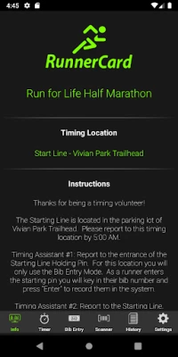 5. Follow any instructions on the Event Info screen for your timing location, and ...