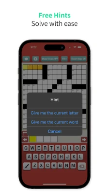 Want a little more help? Hints are available to show the current letter and the current word in each puzzle.
