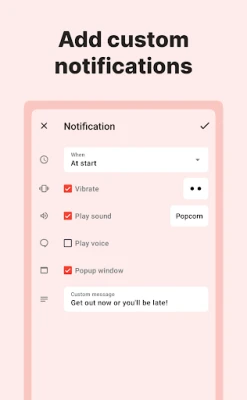 You can add custom reminders to your time blocks, so you don’t forget your agenda: reminders with custom vibrations, custom sounds, voice, etc (ideal if you have ADHD).