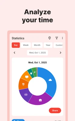 TimeTune Schedule Planner also shows you statistics to see where the time goes. Check them to see if your time is correctly structured and how you can improve.