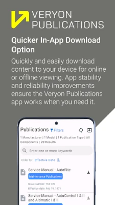 The Veryon Publications Mobile Application is included at no additional charge with a subscription to the Veryon Publications service. The Veryon Publications Mobile app allows Veryon customers to access critical maintenance and regulatory content,, anytime, anywhere. It enables both online and offline access so professionals can work however and whenever needed for increased productivity and operational efficiency. Customers use the app online or to download, store and access content from Veryon Libraries.